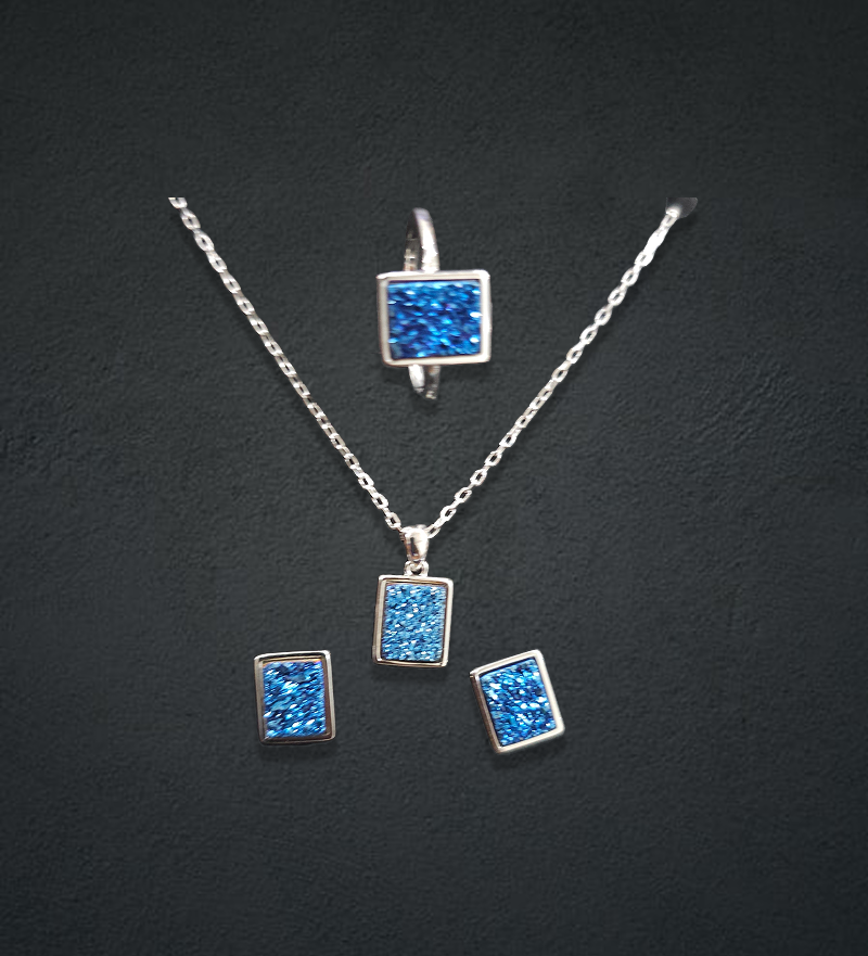 Elevate your Style with our stunning Blue Druzy Delight Pendant Set